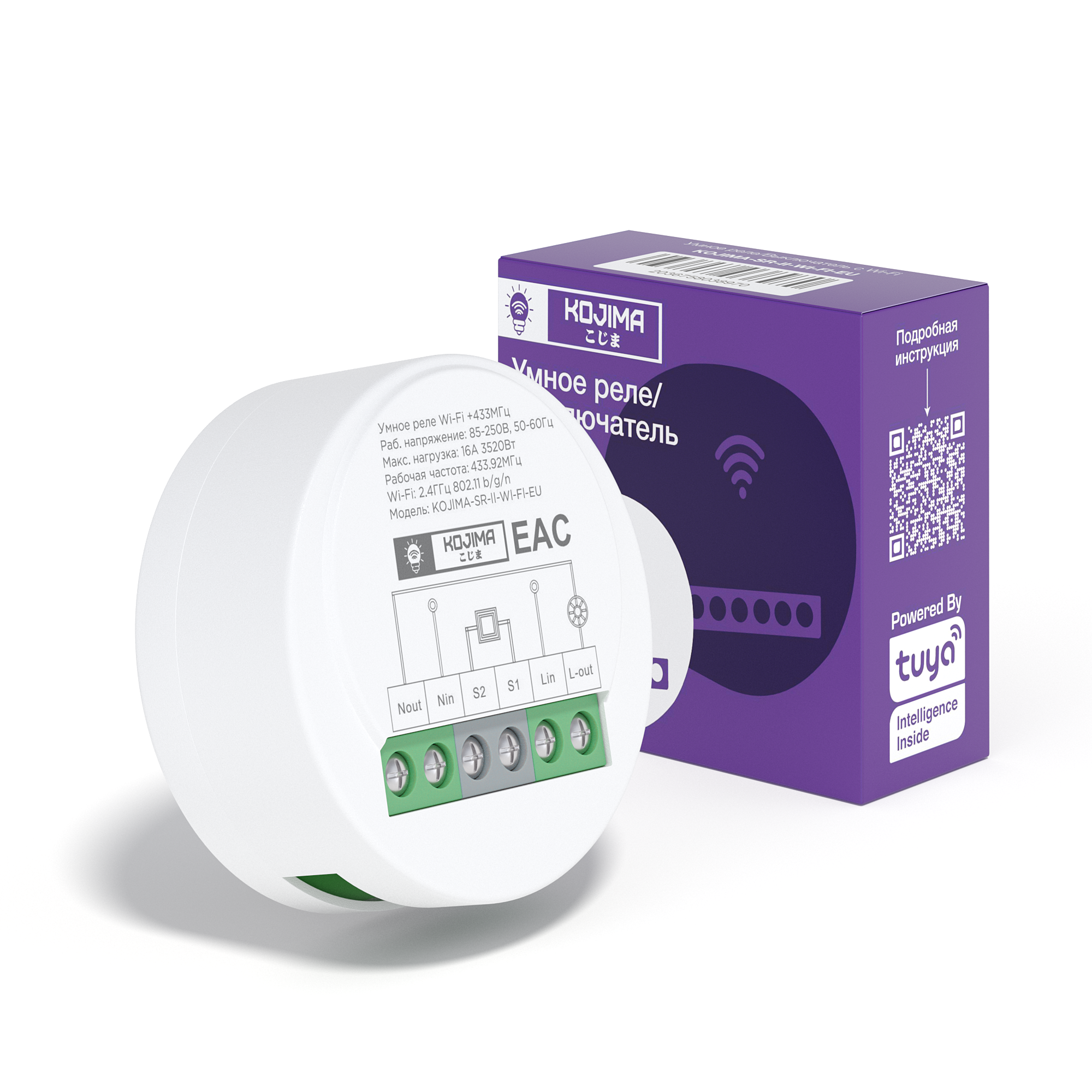 Умное Wi-Fi+433МГц реле/выключатель KOJIMA для электрических приборов и устройств в доме. Мобильное приложение адаптировано под большинство устройств IOS и ANDROID. Вы с легкостью включать и выключать свет по расписанию с функцией таймер, управлять группой реле одним нажатием, управлять с помощью голосового ассистента Яндекс Алисы или Google Assistant.