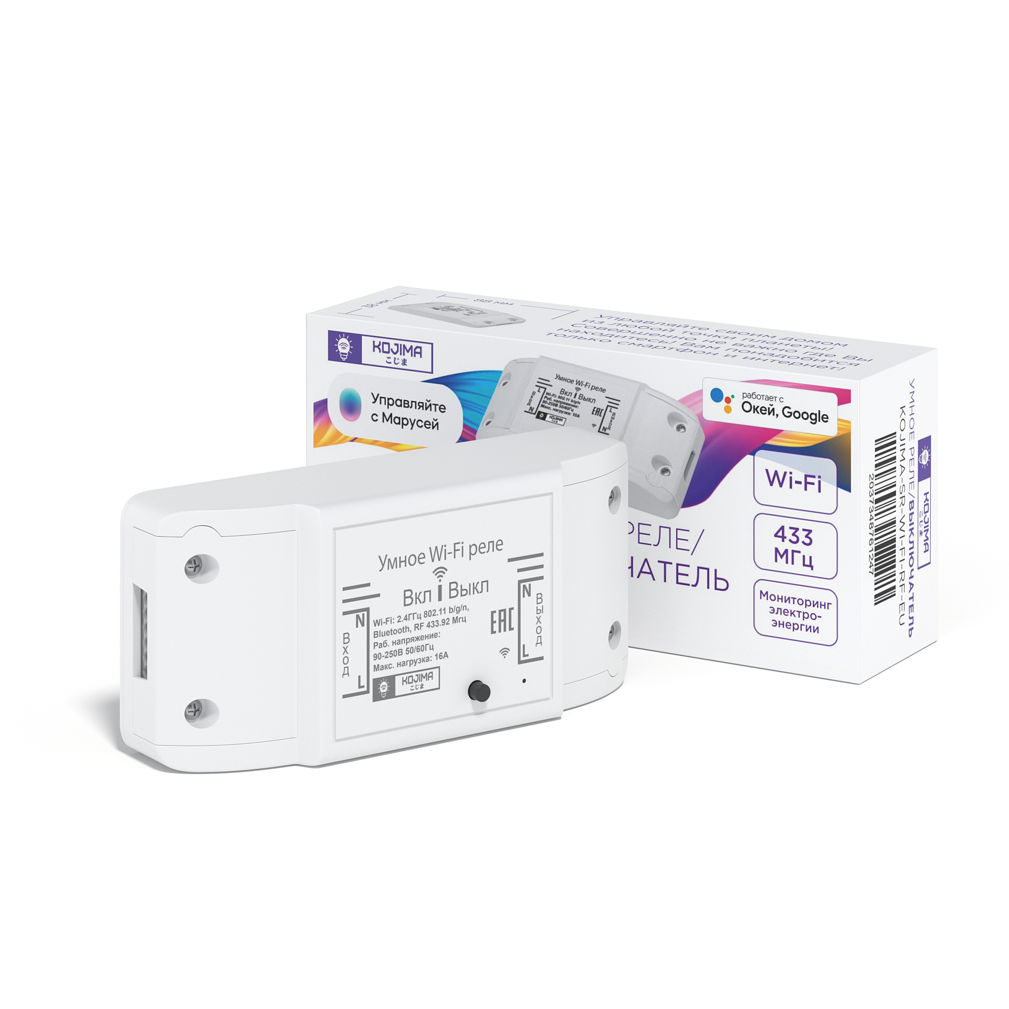 Умное Wi-Fi реле/выключатель KOJIMA для электрических приборов и устройств в доме. Мобильное приложение адаптировано под большинство устройств IOS и ANDROID. Вы с легкостью включать и выключать свет по расписанию с функцией таймер, управлять группой реле одним нажатием, управлять с помощью голосового ассистента Яндекс Алисы или Google Assistant.